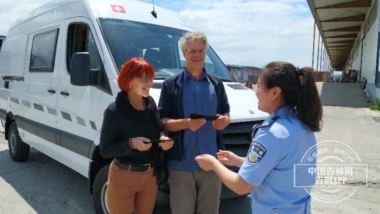 6月20日下午,来自瑞士苏黎世州自驾环球旅行的库尔特和玛莉娅夫妇经珲春口岸从俄罗斯进入中国,开启中国站行程。夫妇二人要自驾从珲春经云南磨憨出镜,因此急需办理临时入境机动车牌证和临时机动车驾驶许可证。珲春市公安局交警大队了解这一情况后,立即与上级部门沟通,确定办理流程和所需手续,与该瑞士夫妇的导游沟通,并要求提供相应的车辆信息、海关、保险、体检等相关手续,指派专岗专人全程为该外国夫妇开启绿色通道,迅速认真核对相关手续与车辆情况。确定一切合格后,次日上午,珲春市公安局交警大队为夫妻二人发放临时入境机动车号牌和临时机动车驾驶许可证。