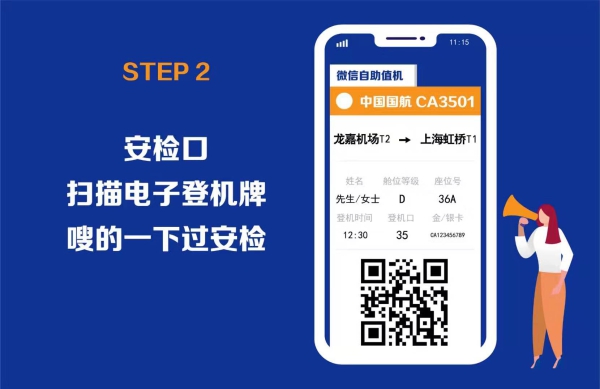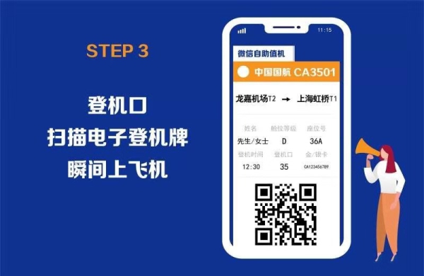 (3) 所乘坐航班的航空公司官网、APP或公众号,在线办理值机,获取二维码电子登机牌。
