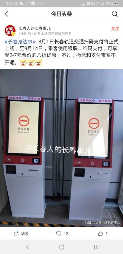 根据微博的消息,8月1日起,长春轨道交通的扫码支付功能将开通,但目前仅限于银联支付,微信、支付宝等功能尚未开通。