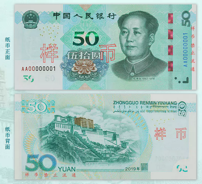 同时,为适应人民币流通使用的发展变化,更好维护人民币信誉和持有人利益,提升人民币整体防伪能力,保持第五套人民币系列化,中国人民银行决定发行2019年版第五套人民币50元、20元、10元、1元纸币和1元、5角、1角硬币,在保持现行第五套人民币主图案等相关要素不变的前提下,对票(币)面效果、防伪特征及其布局等进行了调整,采用先进的防伪技术,提高防伪能力和印制质量,使公众和自助设备易于识别。