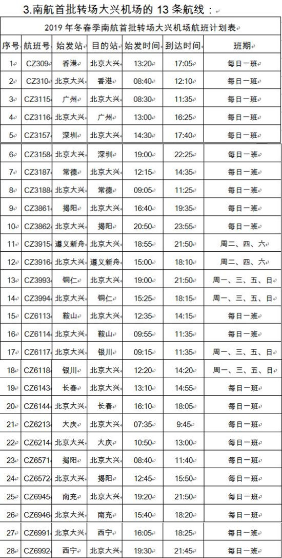 京广、京深线率先转场,南航首家在大兴往返国内航点投放宽体机