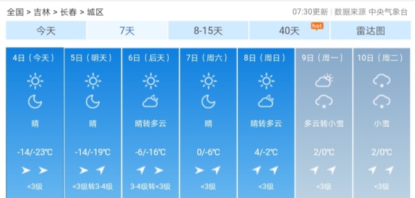 不过,从12月6日开始,我省气温回升明显。到了本周日(12月8日),长春的最低气温为-2℃,最高气温为4℃。下周,我省还有新一轮降雪过程。