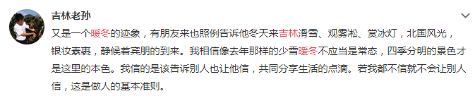 随着12月的到来,呼啸的寒风让吉林省颇有点迈入冬天的味道,似乎冷空气就这样来了,但明明已经立冬一个月之久,近日吉林省各地的气温却有些“不正常”,很多网友在微博上热议:感觉今年气温不正常,到今天最低气温才零下14摄氏度,往年最冷的时候都要零下30℃左右,难道今年冬天是个暖冬?今年冬天到底冷不冷?