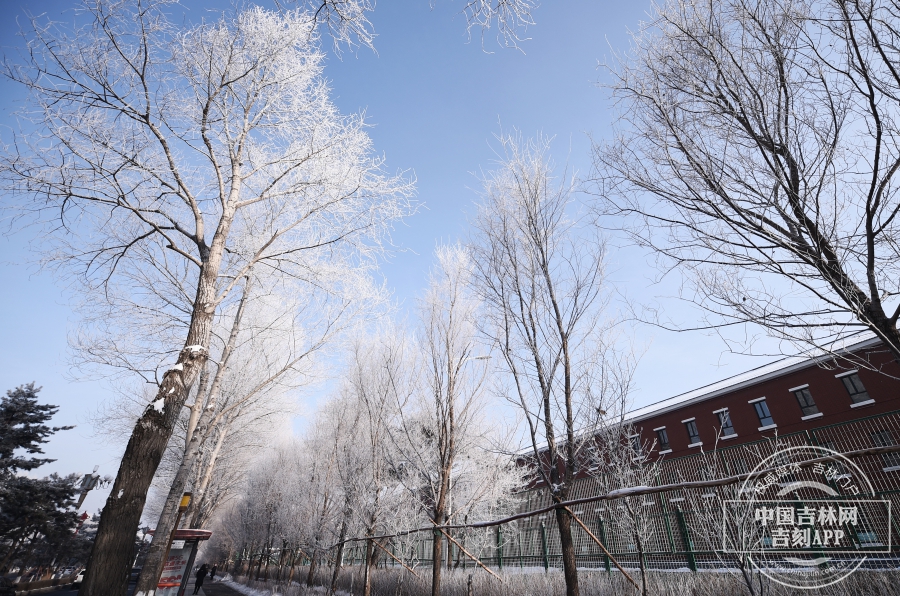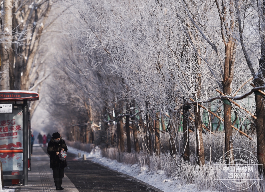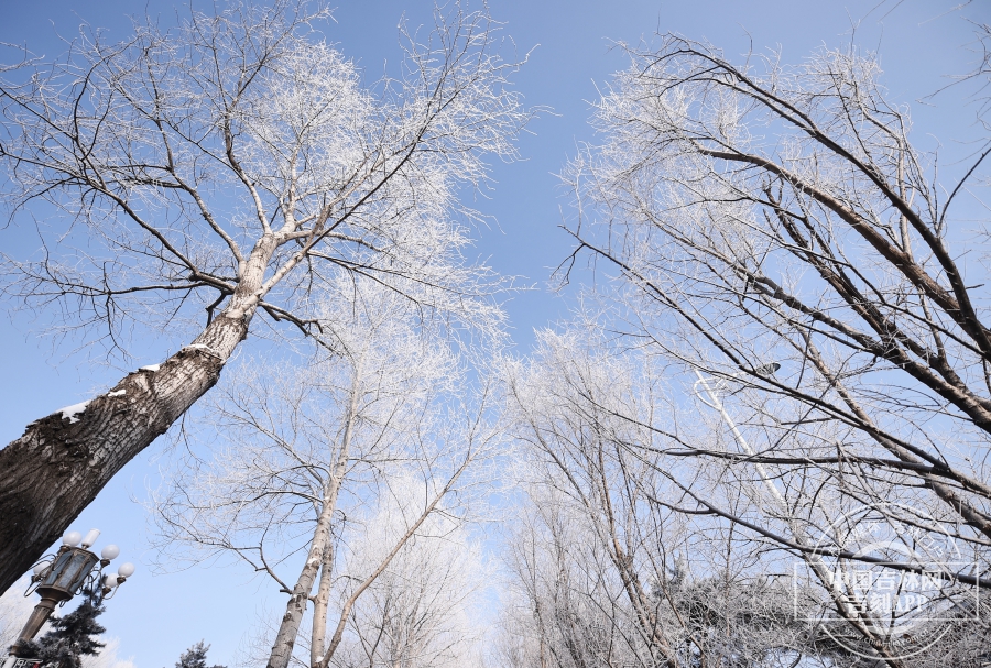 12月24日清晨,吉林长春,在上班的路上,长春市民惊喜地发现,街头出现了雾凇景观,雾凇在阳光的映衬下,晶莹剔透,美不胜收,让人体会到“忽如一夜春风来,千树万树梨花开”的唯美意境。