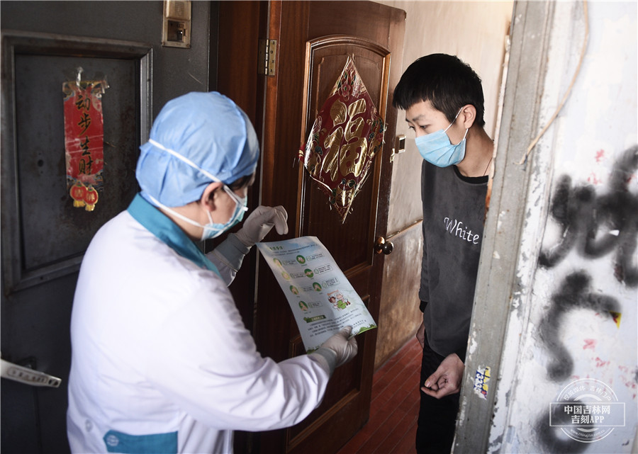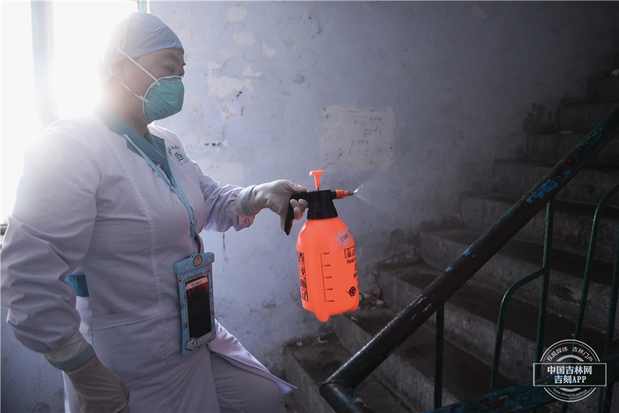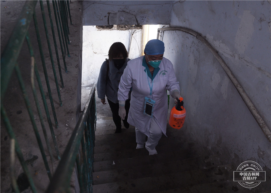 1月29日,在长春市二道区吉林社区卫生服务中心,值班人员24小时值守,按照指令随时进行入户测温和医学观察等工作。当天,记者跟随工作人员们一起,去到沿河社区辖区内的居民家进行了入户测温与消毒。
