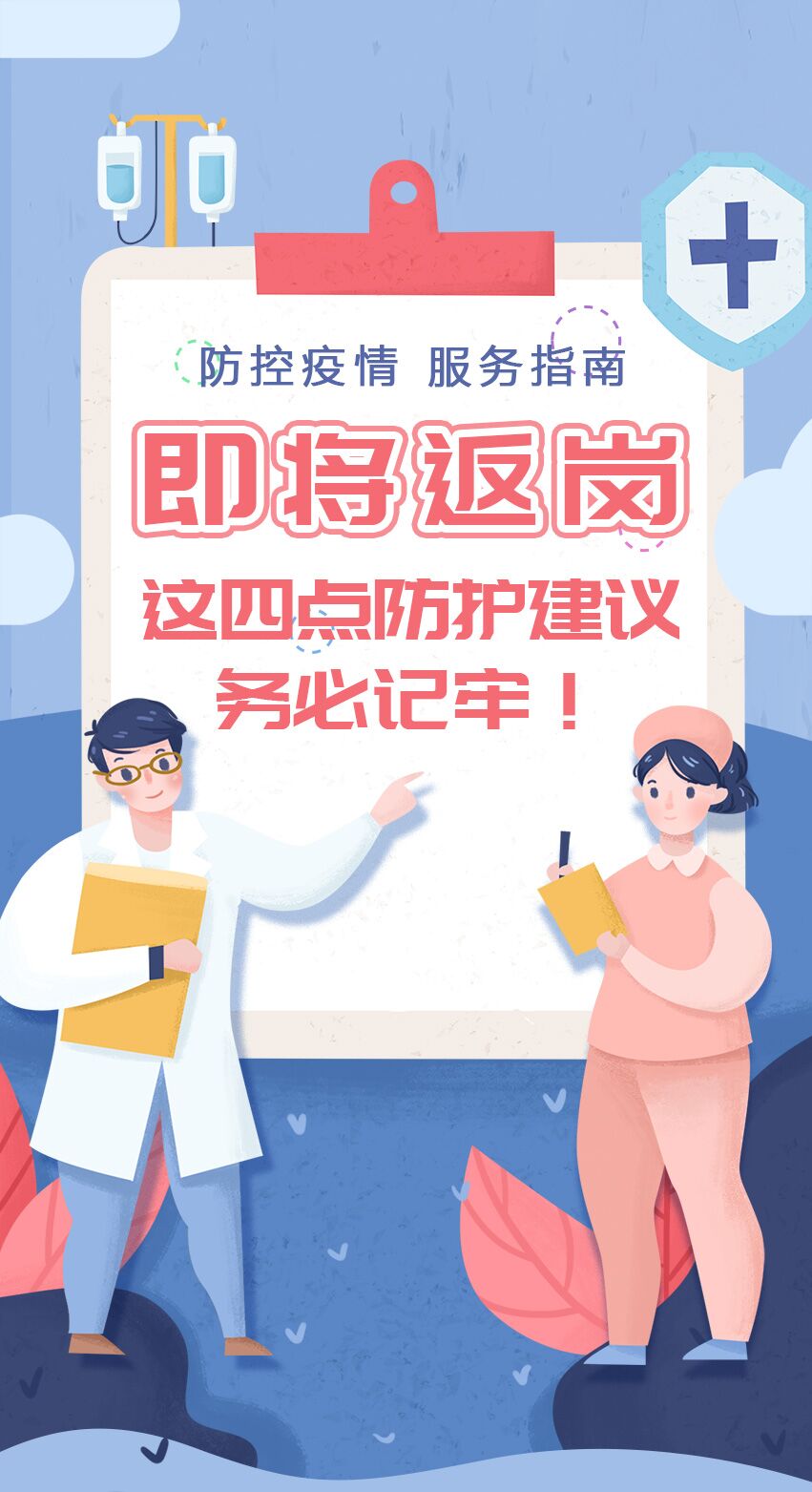 距离上班时间越来越近,但疫情还在继续,即将返岗,这四点防护建议务必牢记!记不住的话,请将这条信息保存好,告诉好身边的同事!