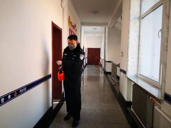 邢锦辉在大队主要负责后勤工作,为了保障奋战在一线抗疫民警的生活所需,邢锦辉和同事们需要24小时轮流值守。由于疫情来的突然,为了减少因人员流动而产生的感染隐患,营区内每天要进行三次消毒,民警每天还要进行体温测量,这些都成了邢锦辉的“附加工作”。当大家开始忙着处理工作时,他就会独自背着消毒容器,对营区各个地方进行全方面的消毒,门把手、楼梯护栏……每一个角落邢锦辉都不会放过!