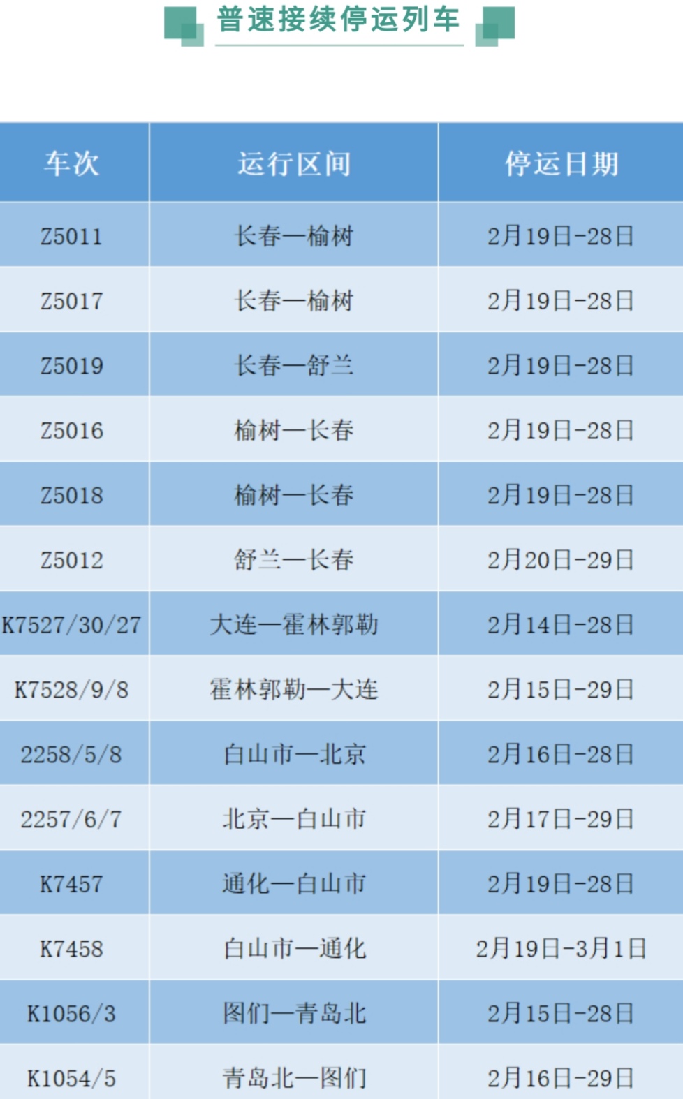 停运信息随时变化,沈阳铁路部门提醒广大旅客,相关列车运行信息以车站公告为准,请旅客密切关注12306铁路客服网站及车站公告,了解最新列车运行动态,合理安排行程。