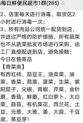 该超市的老板在闲暇时与微信群内的业主聊天时候表示,近期前来买菜的人实在是太多,服务人员根本不够用,他请了几个朋友帮忙才能开业,就是为了让大家能够就近买菜。大家有什么特殊想买、想吃的东西不想走远道儿去买,跟他说一声,他进货的时候就顺便带回来,也方便大家购买,老板会每天给大家拍一下店里有什么菜,有需要的也可以微信订货、微信付款。此外,他还提醒,购买白菜等存储的青菜应上午前来,因为下午基本就脱销了。
