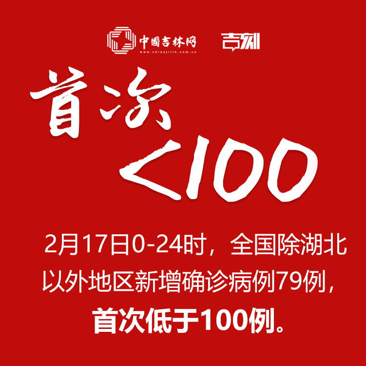 2月17日0-24时,全国除湖北以外地区新增确诊病例79例,首次低于100例。