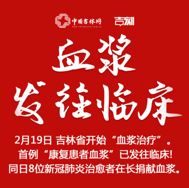 * 血浆发往临床:2月19日,吉林省开始“血浆治疗”。首例“康复患者血浆”已发往临床!同日8位新冠肺炎治愈者在长捐献血浆。