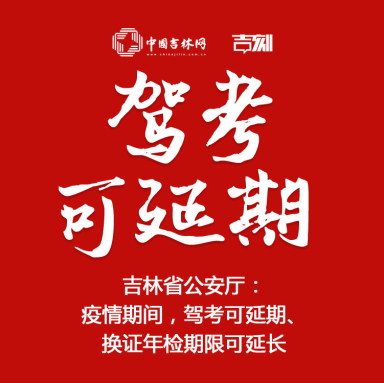 * 驾考可延期:吉林省公安厅:疫情期间,驾考可延期、换证年检期限可延长