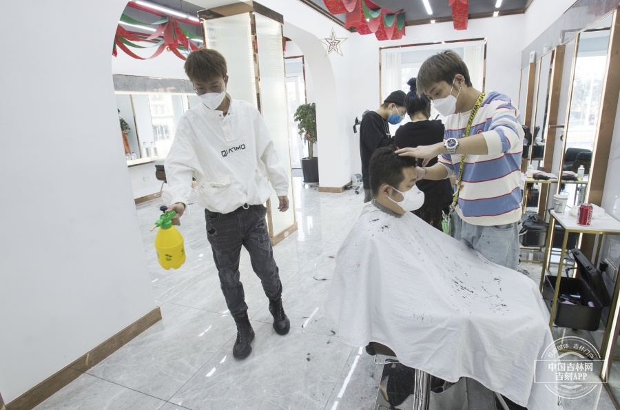 2月24日为农历二月二,在传统习俗里,“二月二,龙抬头”是剪发吉日。受到新冠肺炎疫情的影响,许多理发店都延迟了复工时间。中国吉林网吉刻App记者路过东朝阳路附近一家理发店后了解到,今天是过年后的第一天营业,客人也都是提前预约好的,每位客人到来先测量体温再进行消毒,然后才能进店理发,每位顾客理完发后,店内会进行消毒,再接待另一顾客,确保每位顾客都能安心理发。