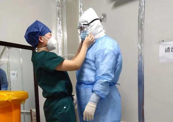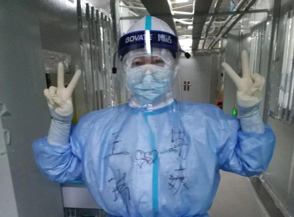 不知不觉防护服里全是水珠,护目镜上满是雾气,水柱一道道地顺着护目镜流下来,虽然眼前已经模糊,可仍然阻挡不了我们工作的热情,为病人测体温、测血氧、分发药物,解决他们生活中的各种问题,尽自己最大的能力帮助他们。
