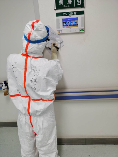 随后,电话被挂断了。来不及伤心,她流着泪水穿好防护服,带着对工作的热情走进了她工作的病区,继续为患者进行护理工作。