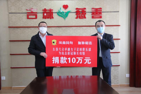 抗击新冠肺炎疫情到了攻坚阶段,为助力打赢这场没有硝烟的战争。正在昆明海埂集训的长春大众卓越女足一线队将帅及俱乐部各级教练、工作人员募捐10万元善款,3月11日经俱乐部交给吉林省慈善总会。