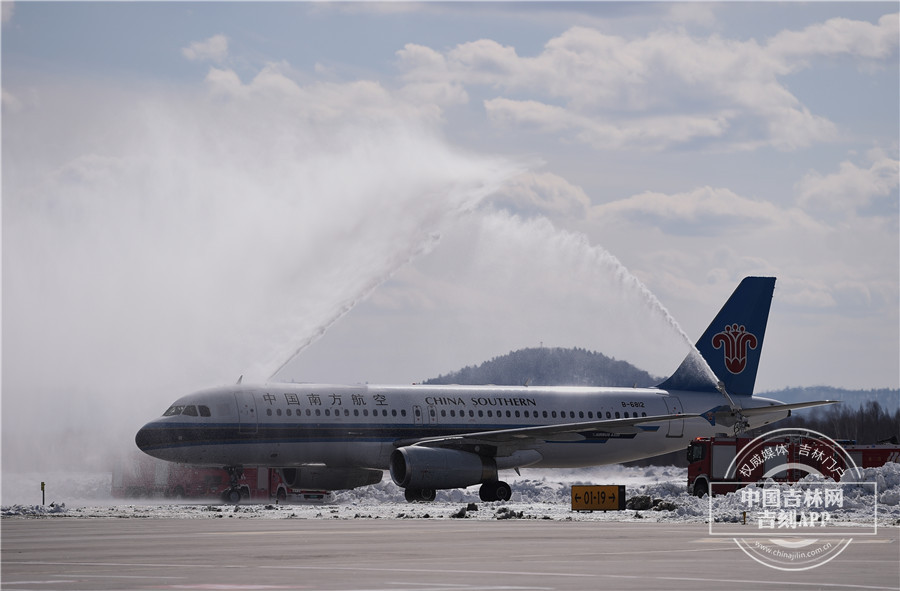 飞机降落后,机场用“过水门”仪式欢迎英雄凯旋,以民航界最高礼仪向英雄致敬。同时,机场塔台指挥通过无线电台向机舱内医疗队员表达欢迎和敬意。