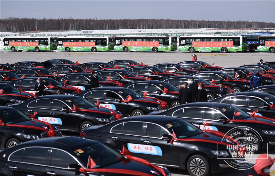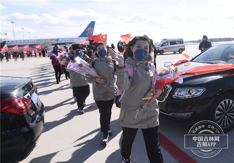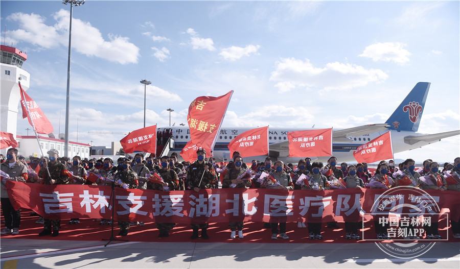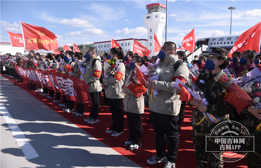 3月22日下午,在家乡人的翘首企盼中,吉林省支援湖北医疗队首批返吉队员共145人和4位赴湖北采访记者,从武汉凯旋。英雄抵达后,我省在长白山机场举行隆重的迎接仪式。