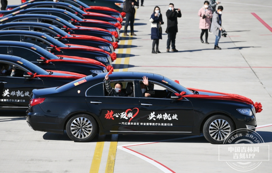 欢迎仪式后,英雄们乘坐家乡生产的红旗车,前往休整驻地。每位白衣战士都有着独属于自己的抗疫故事,我们希望在未来,能听到每个人的故事。