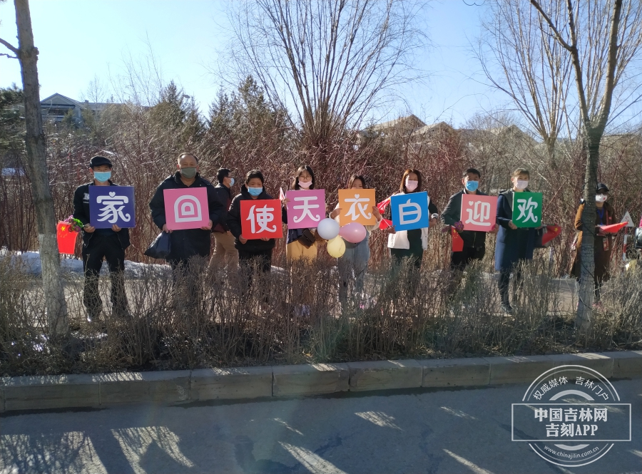 在欢迎的人群里,医疗队员姜聪聪亲友团格外显眼,他们一早出发,驱车6个小时,从长春赶来迎接亲人回家。姜聪聪到达驻地,与亲人隔窗相望,眼里是诉不尽的思念。