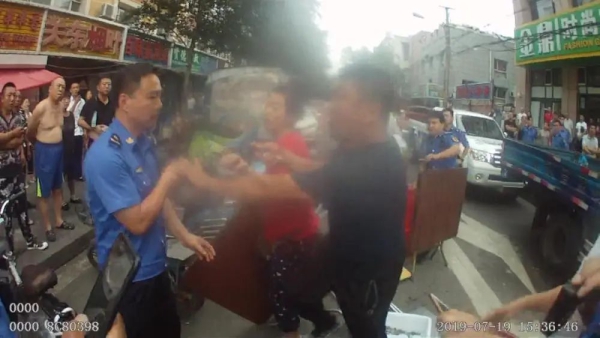 2019年7月19日15时,在长春市宽城区汉口大街一家烧烤店门口,宽城区城市管理执法局站前中队依法清理被告人綦某占道经营的物品时,綦某拒不配合,强行从执法车上拿回因占道被收缴的桌椅,恶语辱骂执法人员。过程中,綦某因情绪激动,手握剪刀冲向执法人员后被拦下,并在撕扯过程中剪开了一名执法人员的裤脚,挠伤了两名执法人员的颈部。