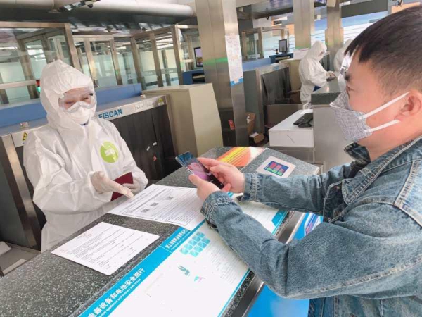 (三)疫情防控期间,在待检区等候时请保持1米安全距离。过检时,请您主动配合安全检查,在证件查验时应取下口罩便于安检人员进行身份核验;在人身检查时请将口罩、护目镜、防护帽等防护物品取下,并按安检人员指导接受安全检查。