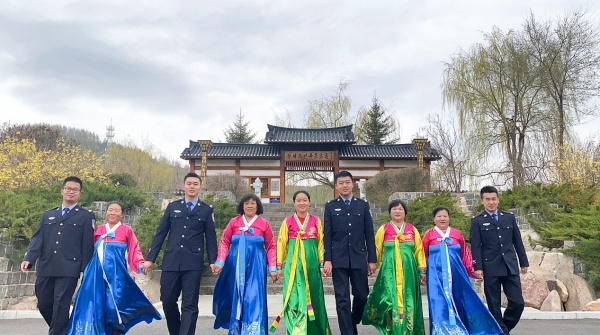 每年母亲节长白边境管理大队民警都会带着礼物和祝福到这些“警察妈妈”家中去看望她们。今年长白大队与社区联合开展了“警民共庆母亲节,绽放民族团结花”为主题的母亲节特别活动,将这些与移民管理警察感情深厚的朝鲜族阿玛尼请到社区,穿上鲜艳的民族服装,与她们一同跳舞唱歌。