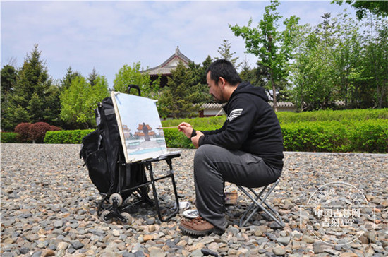初夏微风,湖波粼粼。踏着青草,傍着花木,用笔墨油彩画出醉人风景。