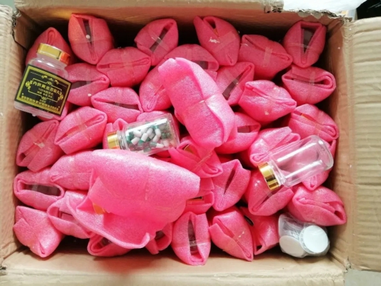 经重庆市谭某提供生产加式完成的胶囊成品,在梅河口市加工包装,以“内供”、“强效”、溶脂减肥等名义,虚假编造宣传图册、检验报告,美化“三无”、有毒有害保健品,枉顾他人生命健康,通过互联网销往全国29个省、98个地市,侵害着群众的生命健康权益。在充分掌握王某的犯罪证据后,经过对案件深入研判,很快锁定王某的真正“供货人”重庆市的谭某。今年4月10日,专案组民警赶赴重庆市,经过缜密候机,相继掌握了重庆人谭某生产制造假减肥保健品的生产窝点、仓库等犯罪证据。