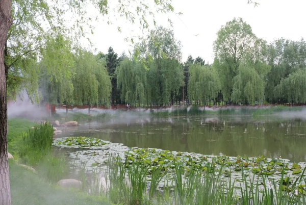 冷雾系统不仅将百花园的自然景观提升更高的一个层次,而且还具有增湿、降温、防尘的作用,其特有的保湿功能可以为驳岸植物提供更好的生长环境,同时改善小环境空气质量,气雾状的雾分子,能有效吸收空气热量,降低局部环境温度。