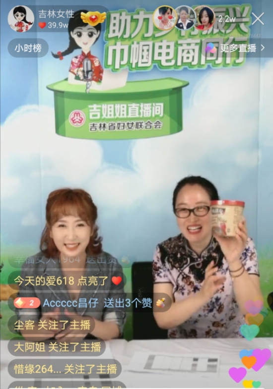 为贯彻中央和省委抓“六稳”、促“六保”的部署要求,进一步推动吉林乡村振兴,助力打赢脱贫攻坚战,充分发挥妇联组织引领服务联系妇女的作用,搭建巾帼网络平台,拓展巾帼农产品销售渠道,实现妇女增收致富,6月9日,吉林省妇联通过“吉林女性”快手政务号,在“吉姐姐直播间”举办“助力乡村振兴 巾帼电商同行”直播带货活动。