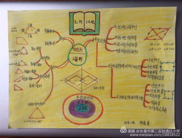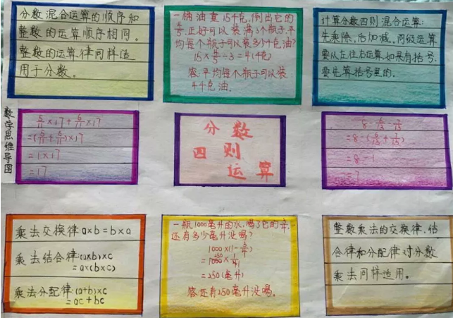 “通过本次活动使学生了解并学会制作简单的思维导图,提高了学生综合运用数学知识的能力。全体数学教师将把此项活动持续开展下去,定期引导学生利用思维导图整合新旧知识,构建知识网络,提高学习效率。寓‘乐’于学增强学生学习兴趣,提升学生思维能力!” 五年组数学教师说。