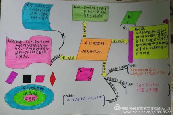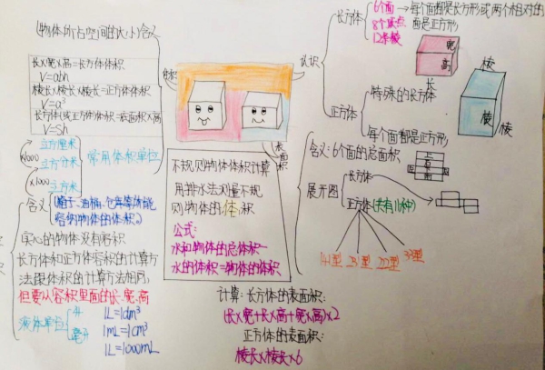 学校的思维导图教学方式打开了学生们大脑中潜能的万能钥匙。利用文图并重的技巧,让主题关键词与图像、颜色等符号连接,让学生们很快记住知识点,让同学们脑海中浮现很多美妙的动画,在减轻学生负担的同时,也让孩子们轻松的掌握了数学知识。