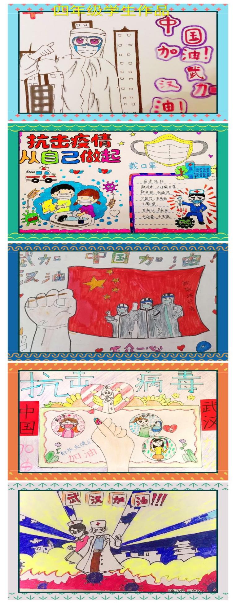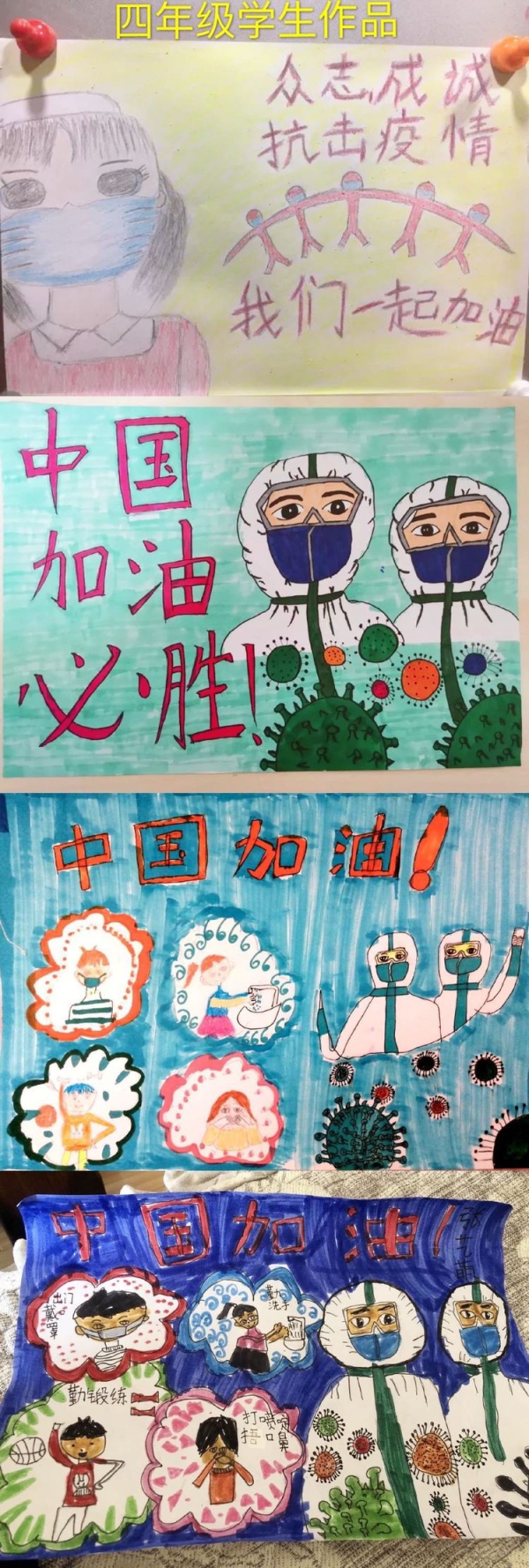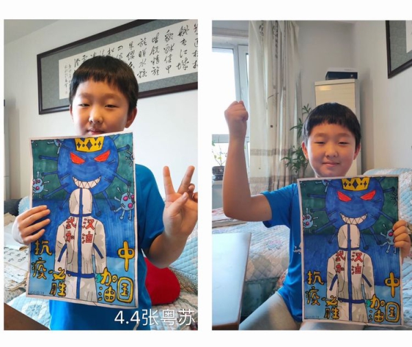 针对特殊疫情,学校制定了相应的美术教学课程,开展了《抗击病毒》主题儿童画、手抄报活动,将防疫知识与教学结合。既有抑制新冠病毒传播的机制 、预防方法等卫生健康知识普及类的美术课程,也有向战斗在一线的医护工作者表示敬意和感谢的绘画创作。抒发爱国情怀,坚定共同抗击的信念!努力实现居家学习的自主性、选择性、实效性。
