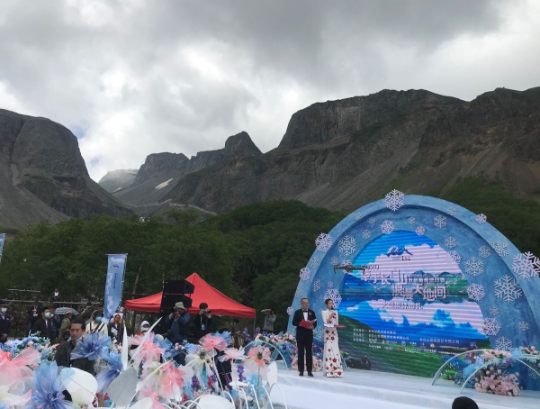 通过与地方特色产业的融合方式来祝愿每一对来长白山的恋人都能“爱我久久”,可见长白山对这次婚礼的用心。