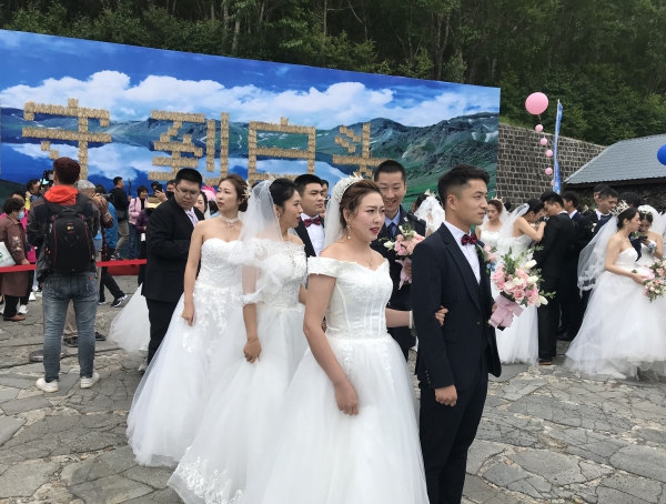 中国吉林网记者了解到,为致敬在“抗疫”中做出无私奉献的医务人员、现役军人、人民警察、媒体记者、社区工作者、志愿者等各行各业因疫情而延误婚礼、在“抗疫”中做出贡献的人们,也为宣传长白山“长相守·到白头”、“神山做月老 圣水也多情”爱情打卡圣地以及生态康养品牌形象,长白山举办的这一场在今年2月就最先提出、最早策划、最好寓意、最美爱心、最优环境、最难忘的 “致敬最美逆行者”大型集体婚礼,凝聚了长白山人浓浓的情意和爱心。