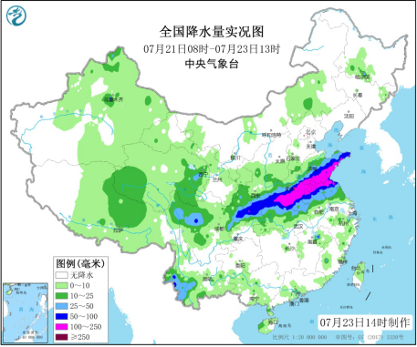 7月19-20日我省出现明显降水过程,东南部雨量较大,气象干旱得到缓解或解除。