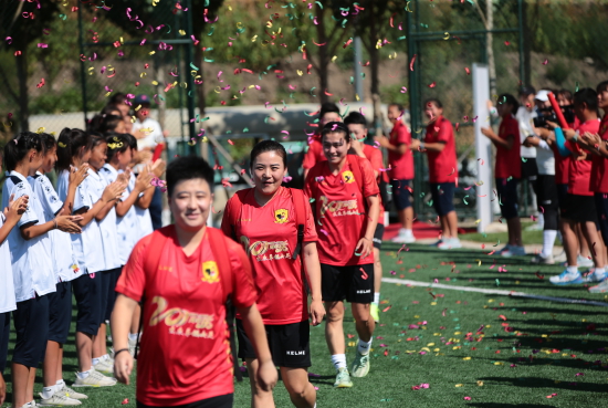 随后,象征着长春女足卓越精神代代不息相传的“传承杯”邀请赛中,长春第一批老女足球员与长春女足U14梯队上演“前浪”和“后浪”的对决。