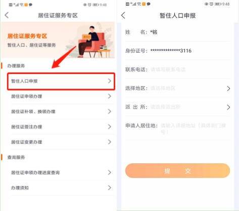 办理居住证需要提前申报暂住人口信息,自暂住人口信息登记日期起180天后可以继续申领居住证。填写相关信息提交申报。