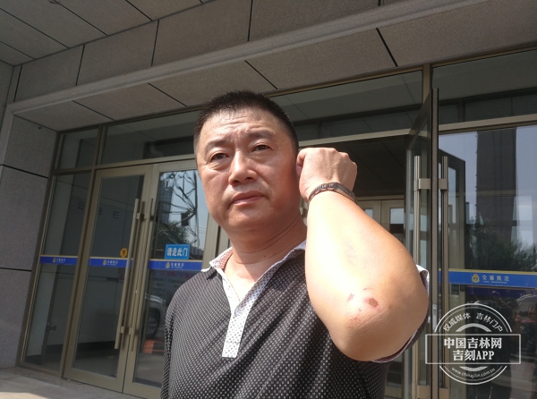 的哥左胳膊肘和左膝盖受伤