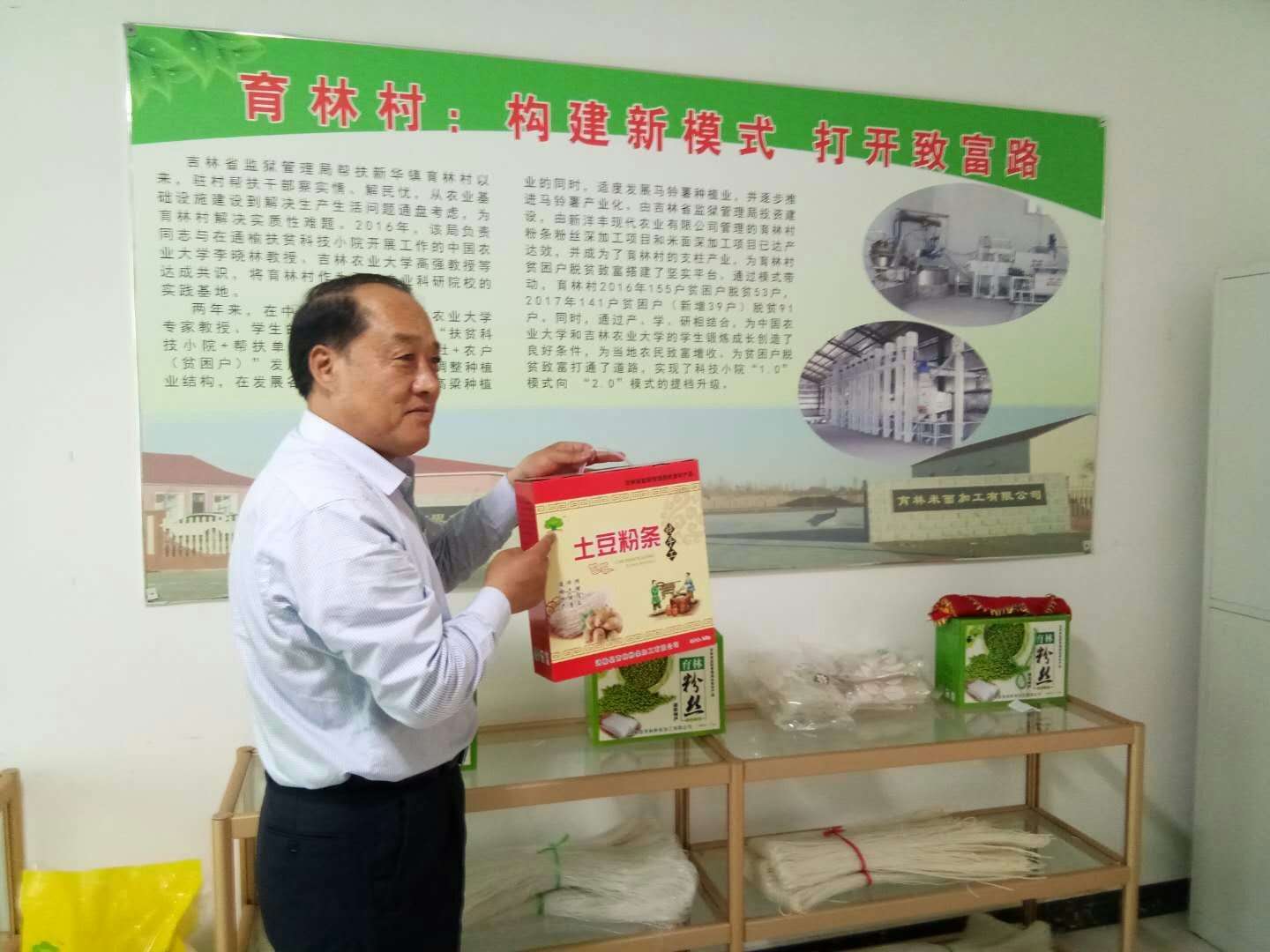 “授人以鱼不如授人以渔”,为真正实现通榆县育林村可持续发展和脱贫致富奔小康,在通榆县委县政府大力支持下,探索脱贫新路径。省监狱管理局邀请农业专家实地考察,调整种植结构,在发展谷子、小麦、玉米、高粱种植业的同时,适度发展马铃薯种植业,并逐步推进马铃薯产业化。2017年,省监狱管理局以“贫困户+专业合作社+地方龙头企业”模式,投资500多万元为育林村创办了“育林粉条加工厂”和“育林米面加工厂”。