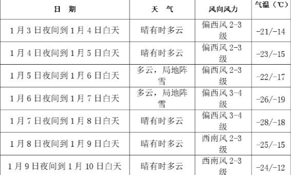 长春市3日白天最高气温: -14℃,3日夜间最低气温:-21℃。