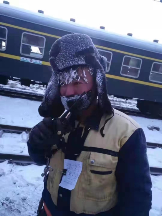 11时45分,上午的作业结束。程明带领班组职工在极寒天气下连续作业3个多小时,高质量完成9钩调车作业。