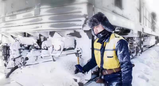 摘挂、连结、试拉,寒风中,程明镇定指挥,一边准确发出一道道简洁的指令,一边监督连结员的止轮作业。“1号,下鞋时先往钢轨上撒点沙子,确认铁鞋是否紧贴车轮踏面;2号,把闸台上的积雪清理干净,系好安全带后再拧闸,下车时慢点,你脚下有冰……”一会儿工夫,程明和连结员们呼出的哈气便在帽子、脖套上结成了厚厚的冰霜,鞋垫与鞋底也被冻在了一起。负责领车的李强严格执行作业标准,尽管双眼被寒风刺得流出眼泪,仍然目不转睛地观察前方线路和车辆走行情况,确保安全万无一失。