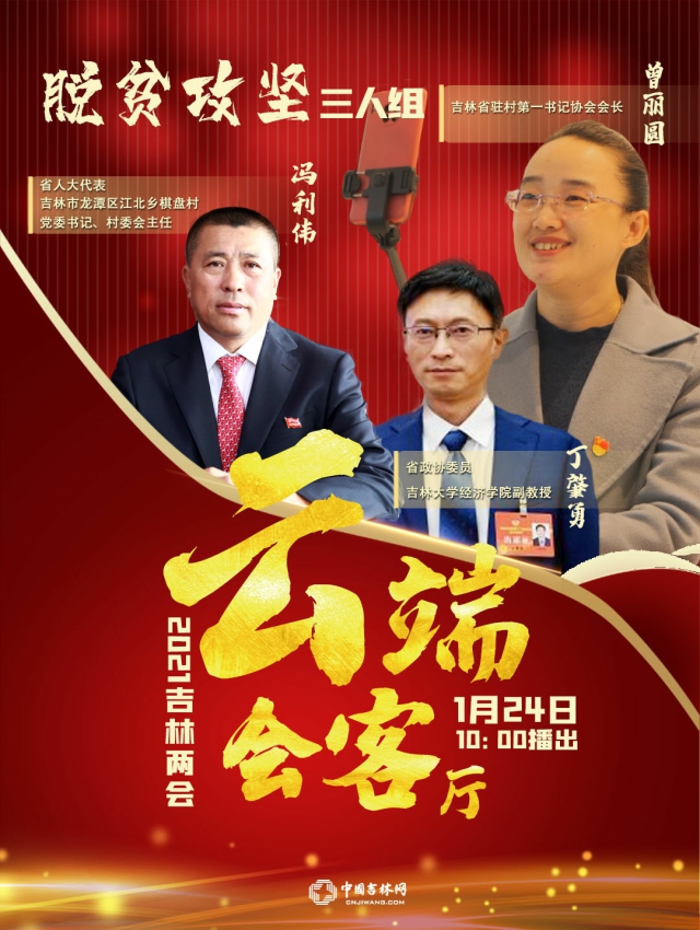 24日上午10时,脱贫攻坚三人组,省人大代表、吉林市龙潭区江北乡棋盘村党委书记、村委会主任冯利伟,吉林省驻村第一书记协会会长曾丽圆,省政协委员、吉林大学经济学院副教授丁肇勇,将做客“会客厅”,和网友互动交流。