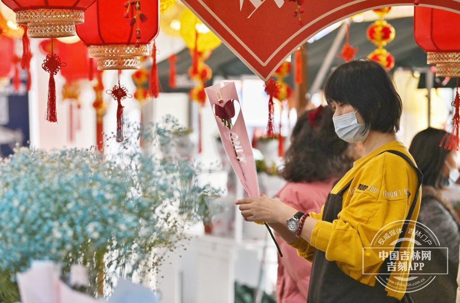 今年的大年初三,恰逢“情人节”。长春的商场内到处弥漫着喜庆热闹的节日氛围——不少商家大门口挂起了红灯笼,玻璃门上贴上了带有年味的春联和大大的福字,广告海报上也是满眼喜庆的红色,伴随着街头巷尾传来的《恭喜发财》《过大年》等歌曲……可谓处处皆散发出过年的讯息,到处皆洋溢着市民浓浓的收获感和幸福感。