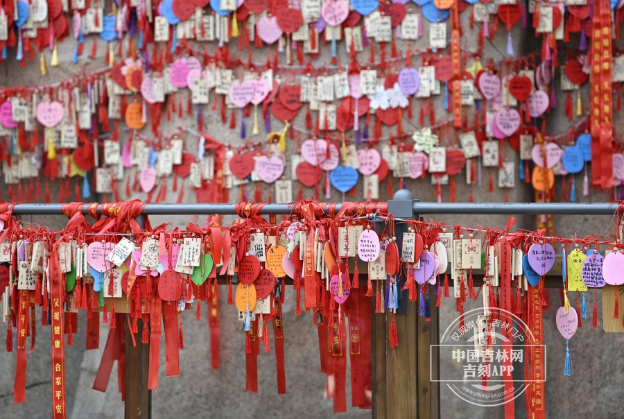 写满祝福的木签挂满围栏。