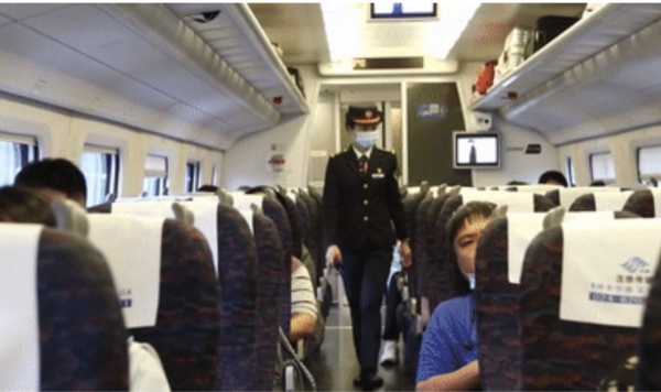 作为一名列车长,李欣主要负责旅客运输工作,不但要维护车厢秩序,做好安全提醒提示,照顾重点旅客,还要及时应对列车的突发状况,一趟乘务下来需要连续工作十几个小时,在车厢内来回奔走上万步。