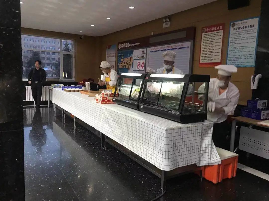 不仅早餐贴心,服务更加贴心。为了方便学生就餐安全,在疫情防控的关键阶段,学校将早餐“搬“进了教学楼一楼。