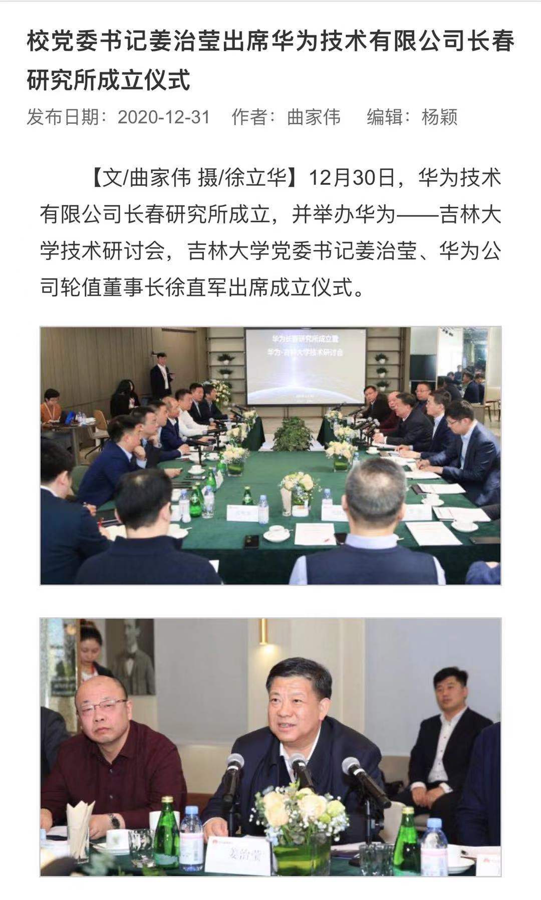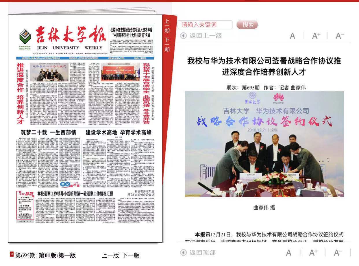 2018年12月21日,吉林大学与华为在深圳华为总部签署战略合作协议,共同探讨产学研合作新模式,培养具有较高思维品质和较强实践能力的创新型人才。